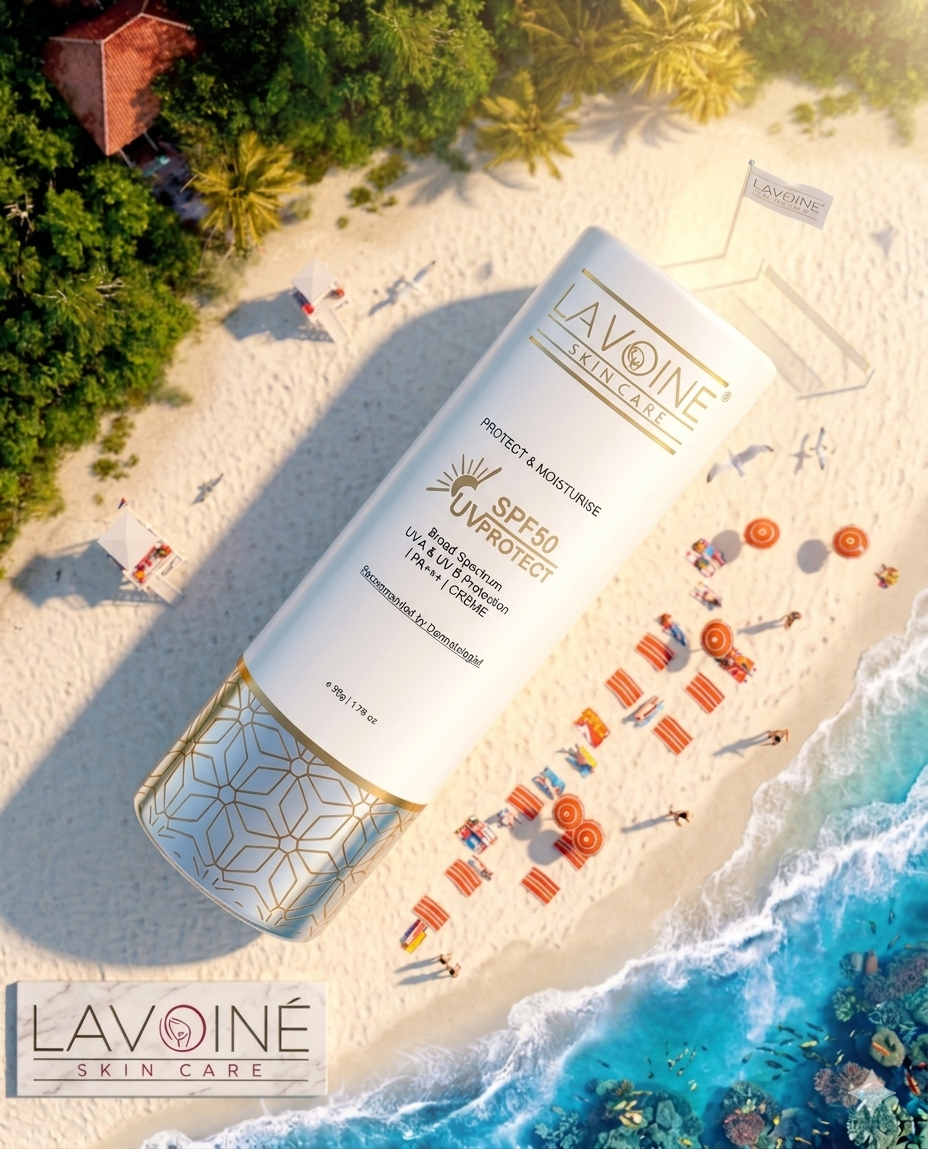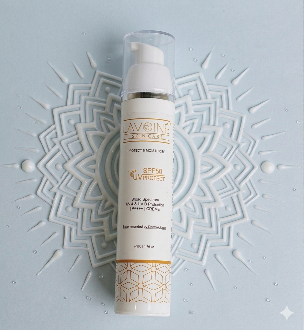 Lavoine Uv Protect : is a high performance sunscreen that blocks upto 97% harmful UVA & UVB sunrays. Its fast absorbing formula with advanced collagen protection prevents wrinkles.